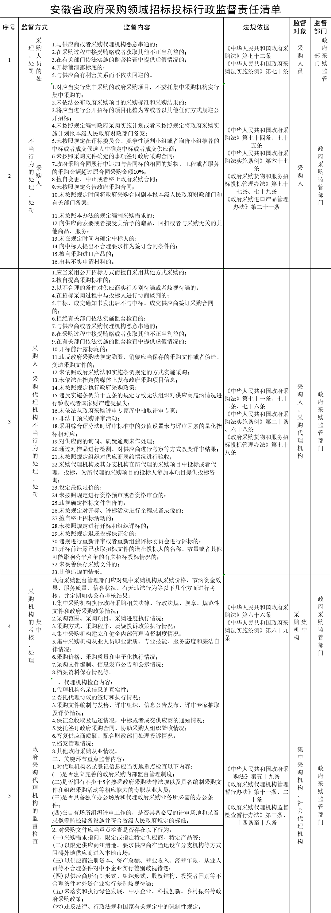11月24日,安徽省财政厅leyu·乐鱼(中国)体育官方网站印发《安徽省政府采购领域招标投标行政监督责任清单》的通知,为进一步明确政府采购领域招标投标行政监管责任,优化政府采购营商环境,规范政府采购行政监督行为,共涉及八类104项内容。